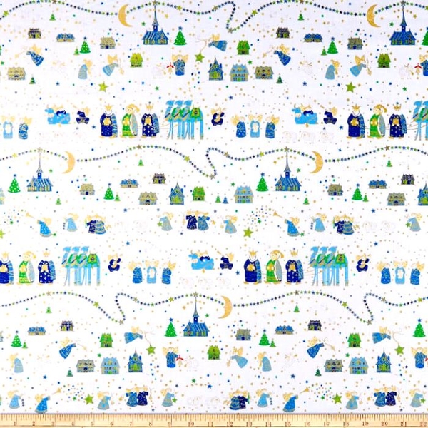 Quilting Treasures Holiday Minis Nativity on White Fabric.
