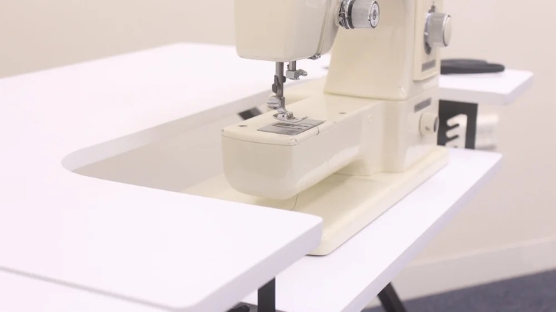 Maximize your workspace with the foldable wooden lift-up shelf on the left side (L24cm × D60cm). When extended, it provides extra room for fabrics, cutting, or crafting; when folded, it saves valuable space — ideal for compact rooms. The easy-clean tabletop ensures a tidy and professional workspace at all times.