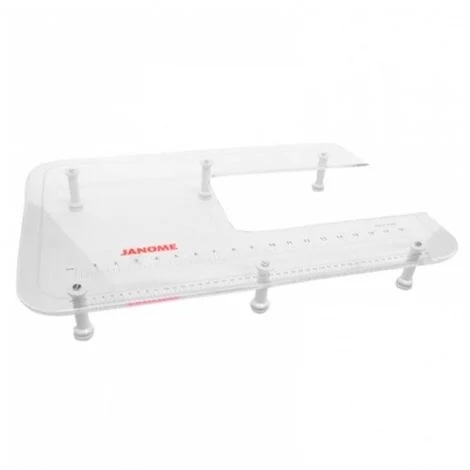 Janome large extension table fits snuggly against the machine giving a much larger work surface and extra support for your sewing projects.