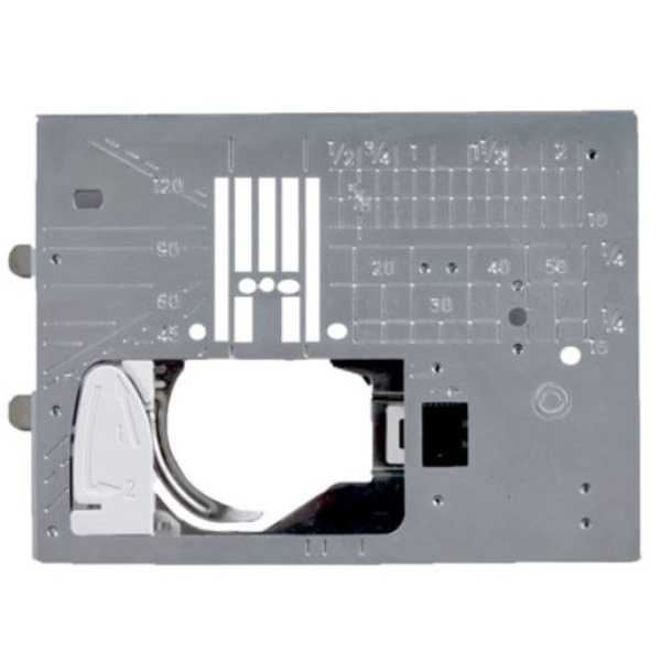 No skipped stitches or puckered fabric anymore thanks to the small needle entry hole in this needle plate. It prevents the needle from pushing the fabric underneath the needle plate. Be careful to use centred needle position everytime with this straight stitch needle plate!