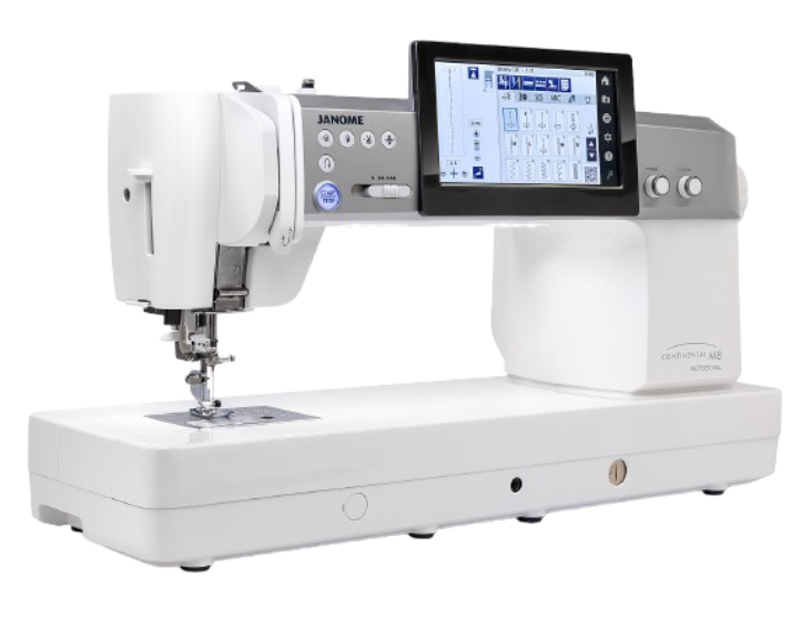 The Janome M8 Continental Sewing machine is a pleasure to use with ingenious features that take care of the little things without us even knowing, for instance, the feed dogs stay down and out of the way so that you can easily position fabric under the needle, once you start sewing the feed dogs come up and feed the fabric. A Bobbin monitor lets you know when the bobbin is running low. The Motor has been re-designed, to sew smoother and quieter but gives extra needle penetration power to go through the thickest of projects. The area above the needle has been streamlined to provide extra visibility around the needle. Bright white LED lights provide a shadow-free sewing space and a large high-definition touchscreen makes operation easy.