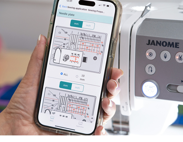 Automatic features like the needle threader, auto thread cutter (scissor button), auto presser foot lift and auto tension give confidence that the best results are achieved. Built-in Sewing applications, operation guides and Janome's Free AccuSpark 2 App, instil confidence that you are getting the most out of the machine.
