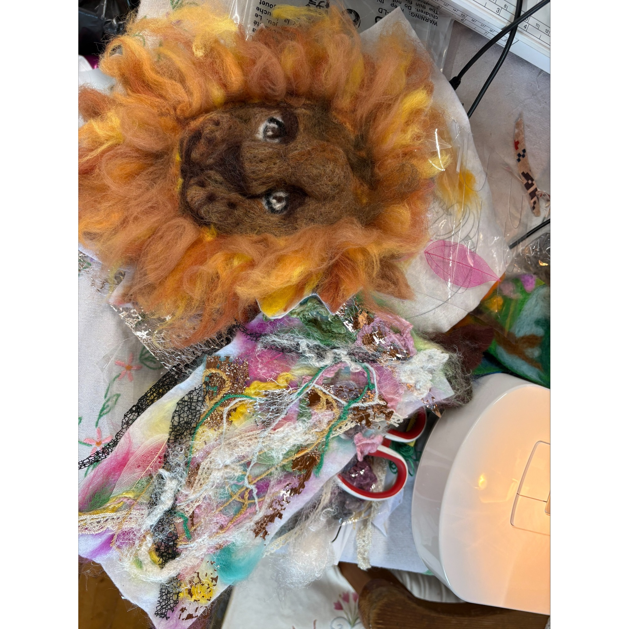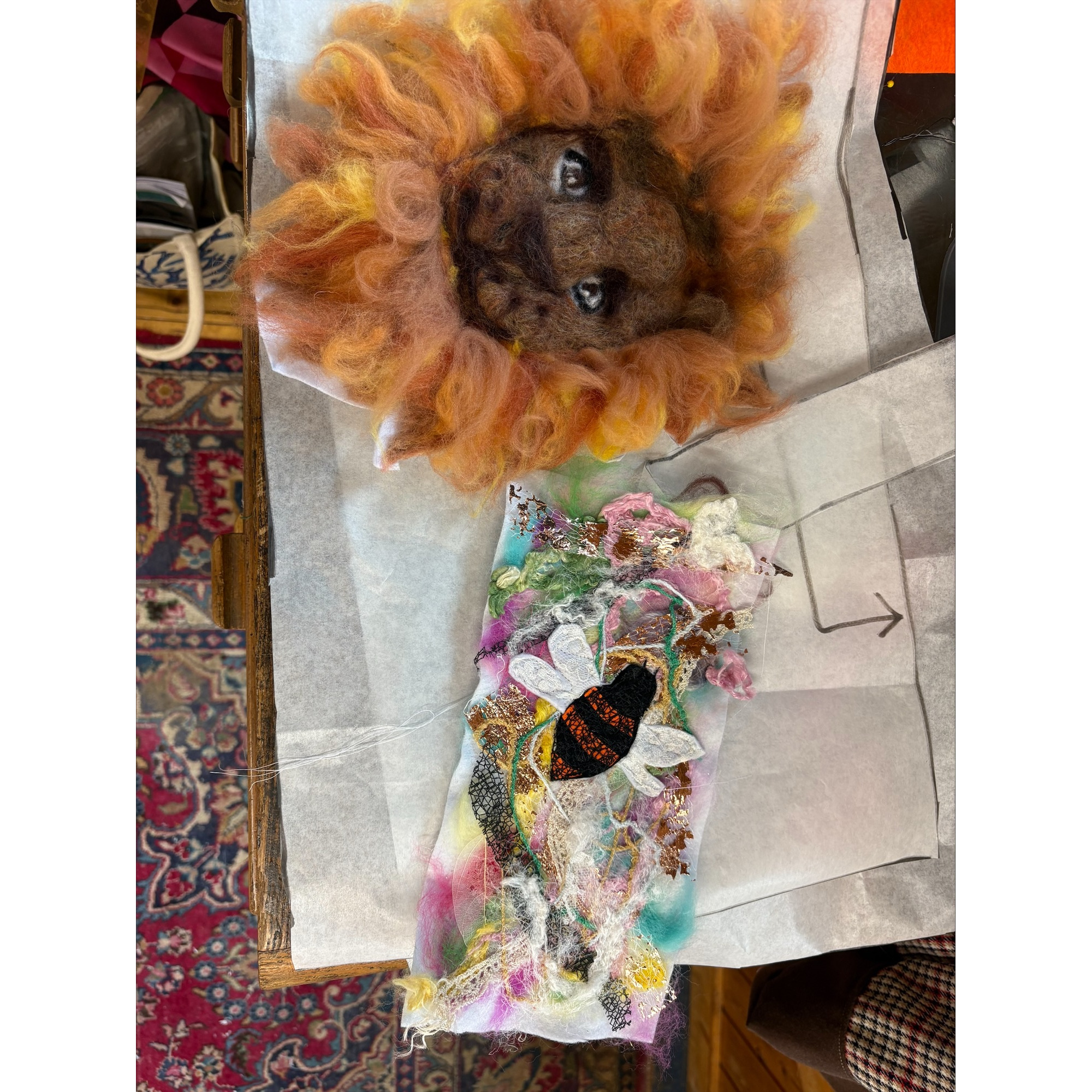 Unlike a conventional sewing machine, the Novum SP1000 uses barbed needles instead of thread. These needles punch fibres through layers of fabric, catching and interlocking them to create permanent bonding and sculpted surface textures. This allows you to felt wool roving into fabric, build up three-dimensional shapes, and create decorative surfaces that would be impossible with ordinary stitching.