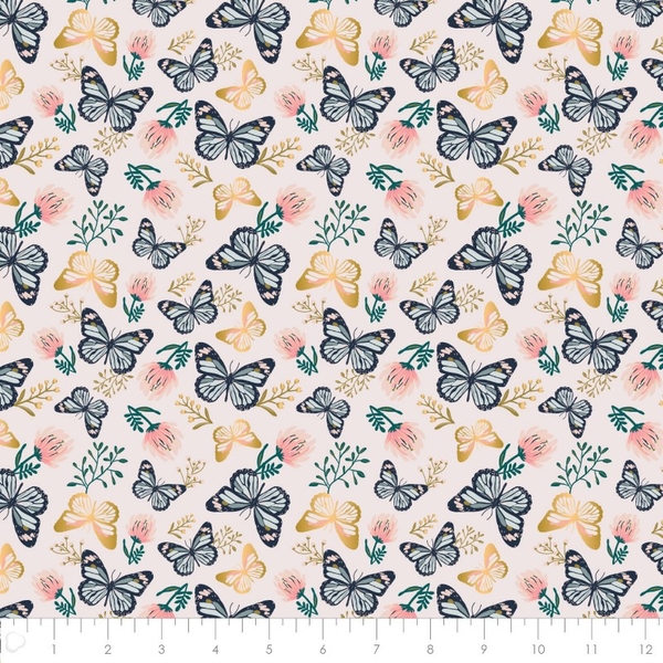 Up, Up & Away Metallic Butterflies on Palest Pink Fabric Information